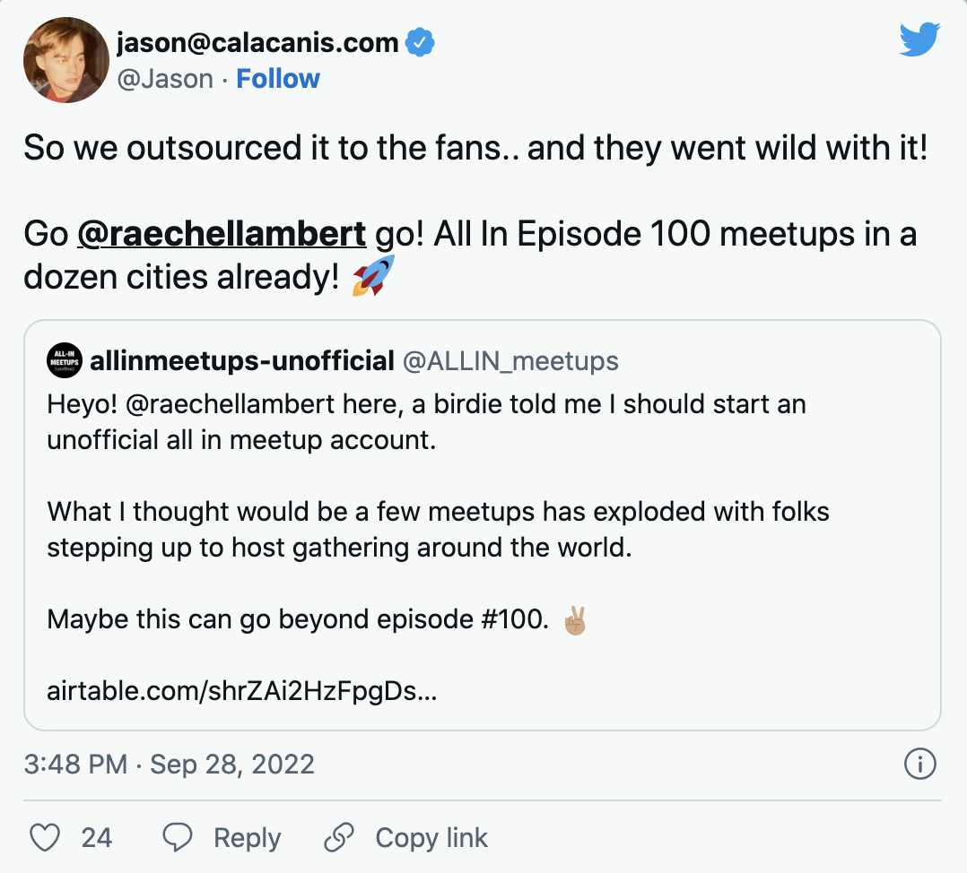 That goes for hosts and attendees. The magic of attending the All-In Summit was that people came together to listen, connect, and grow. Being spammy or trying to hock your wares ruins that.